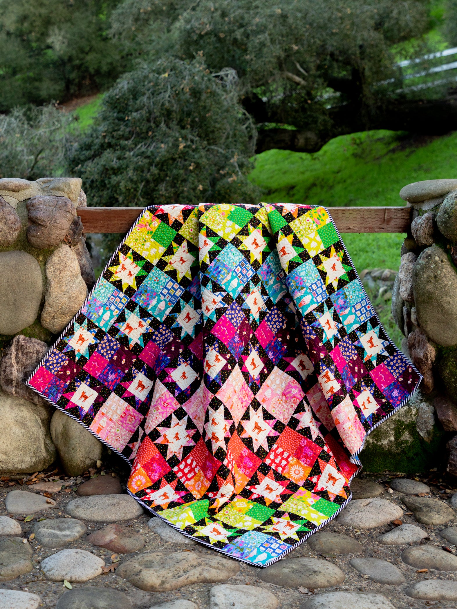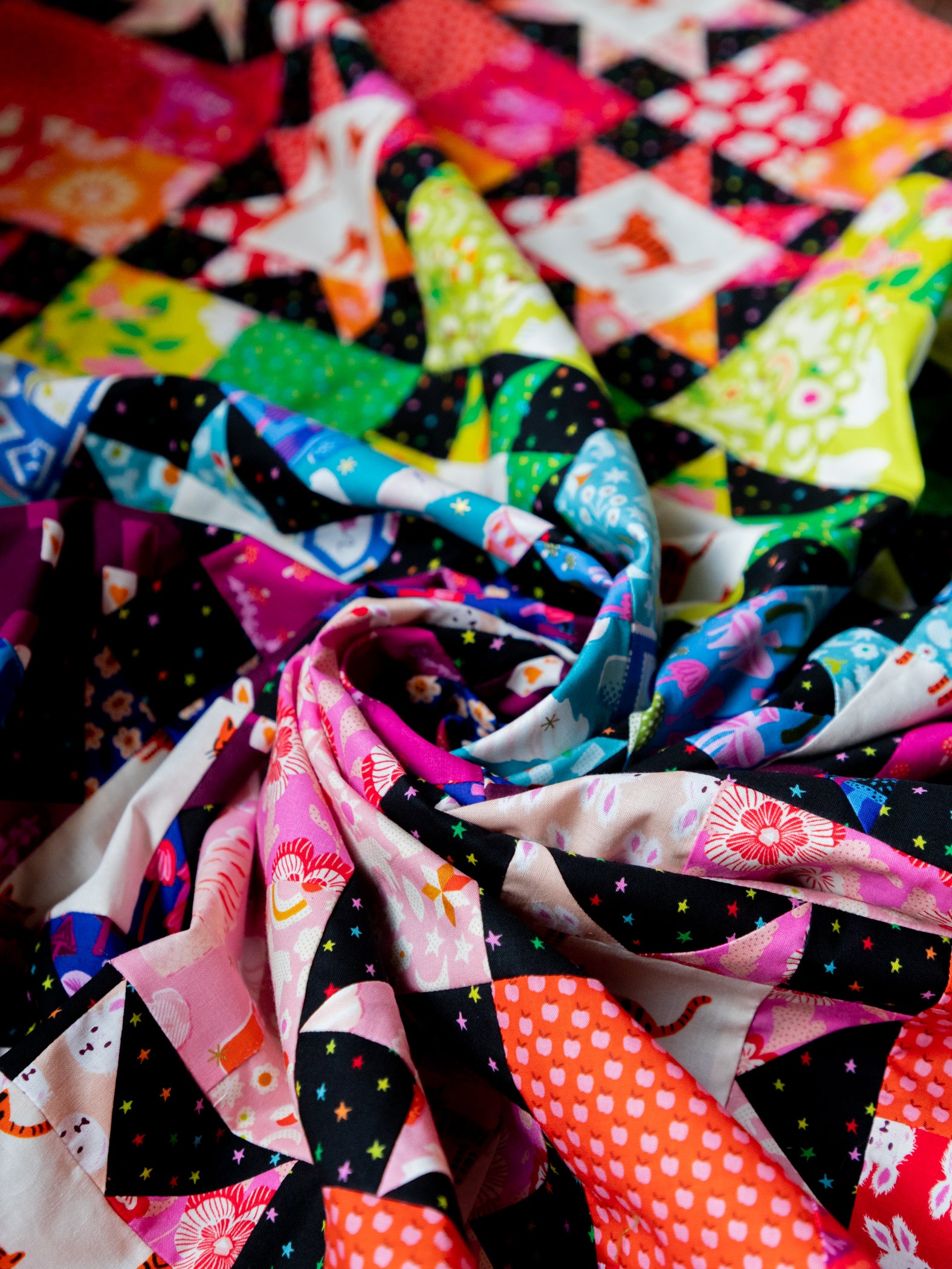 The Fussy Cat quilt is a precut and scrap-friendly quilt pattern using traditional piecing methods for all quilting levels.