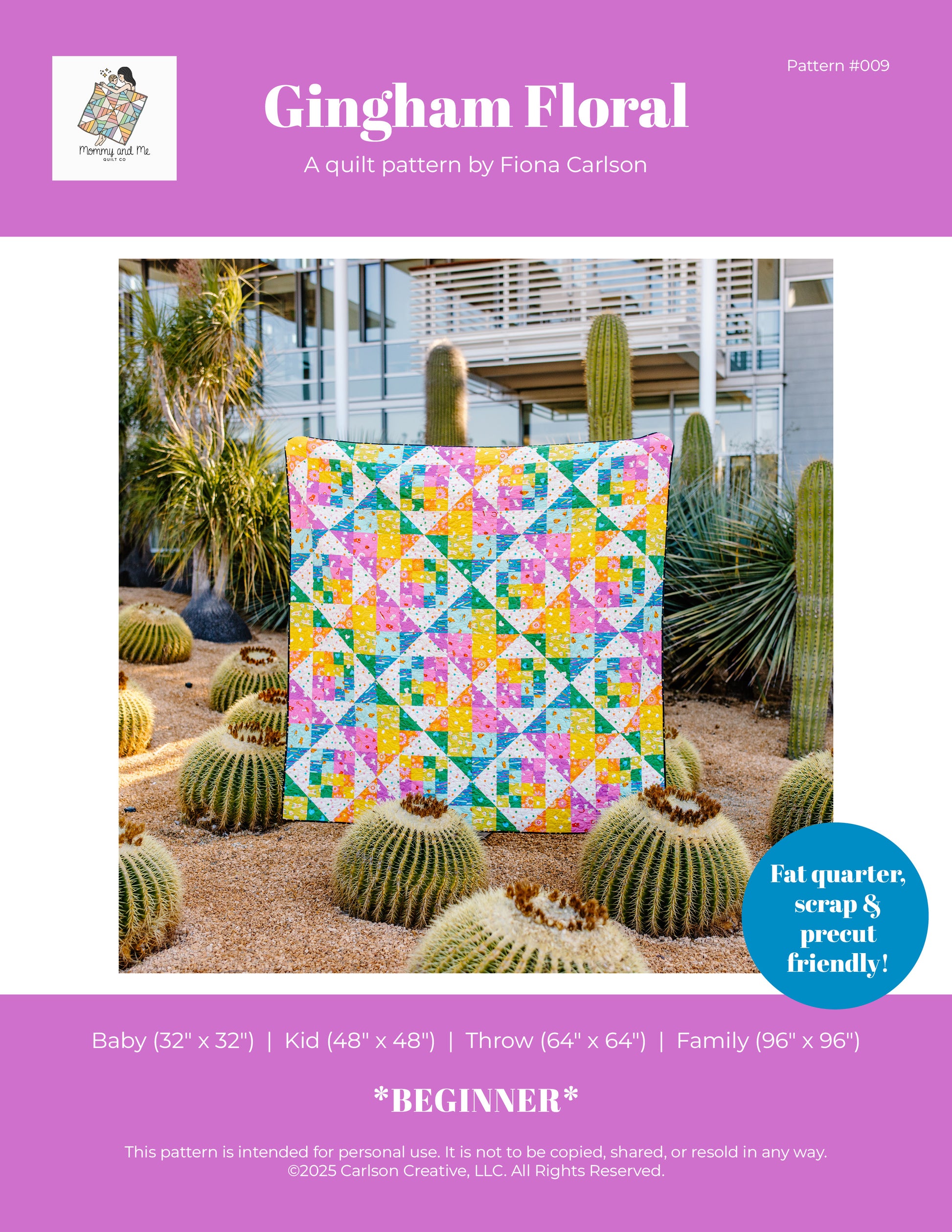 The Gingham Floral quilt is a precut and scrap-friendly quilt pattern using traditional piecing methods for all quilting levels.