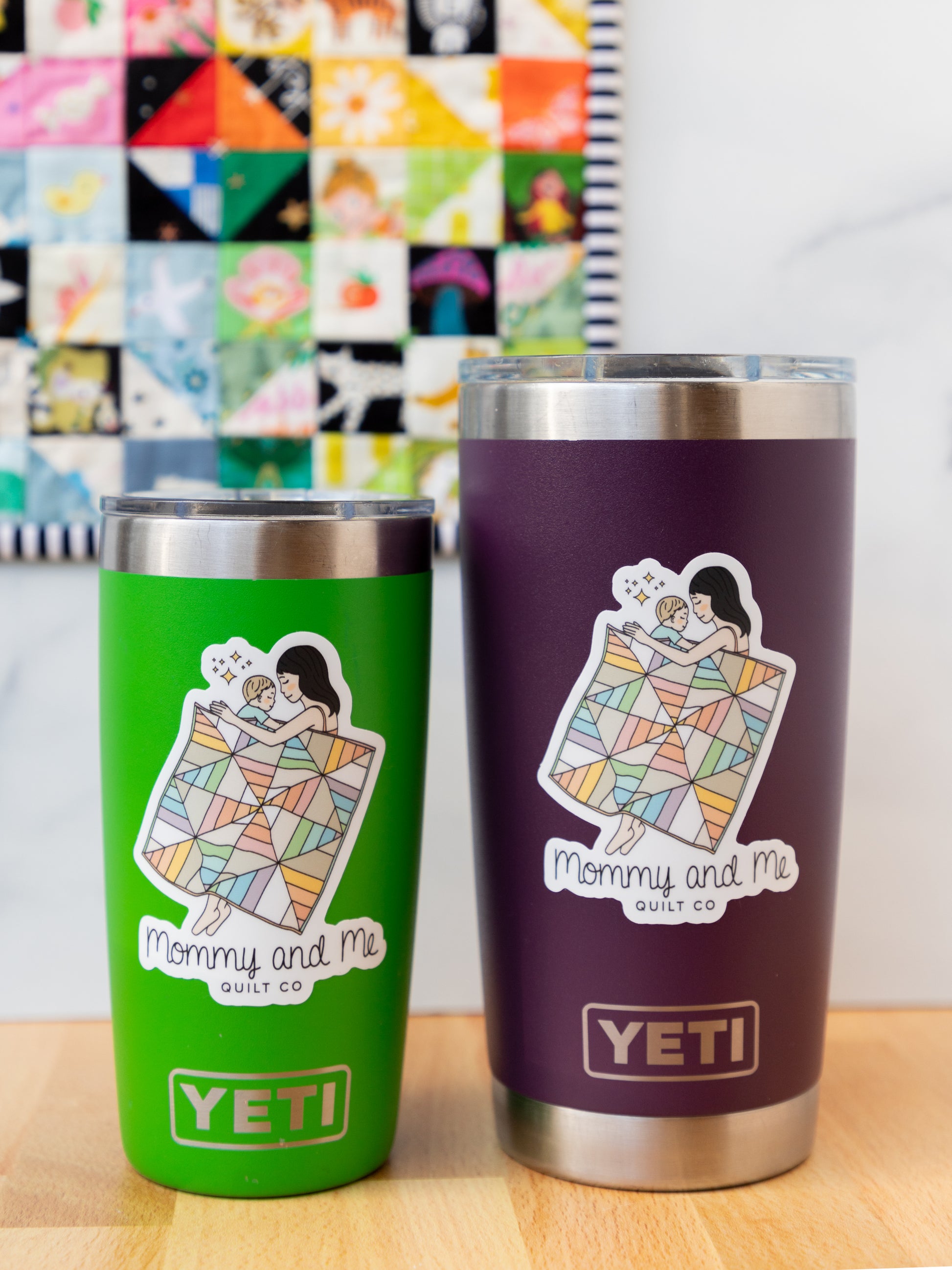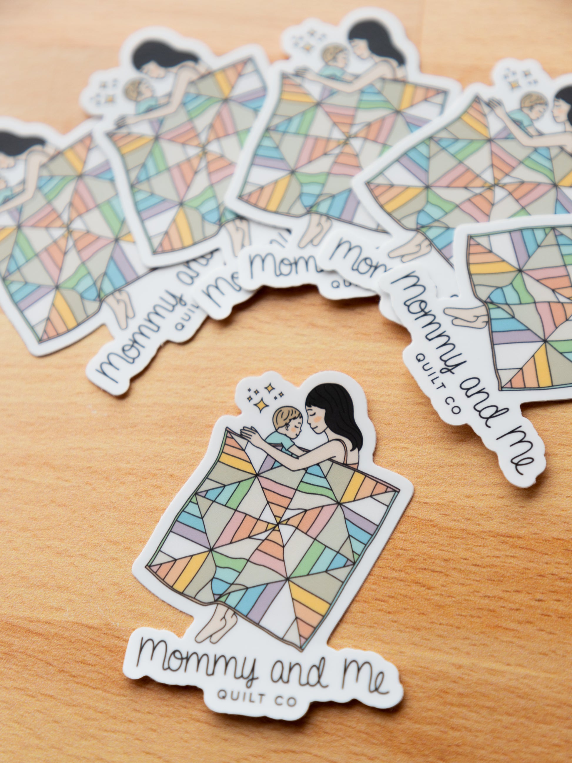 This adorable waterproof sticker celebrates the comfort, security, and tenderness of the close-knit bond between a mother and her young child.