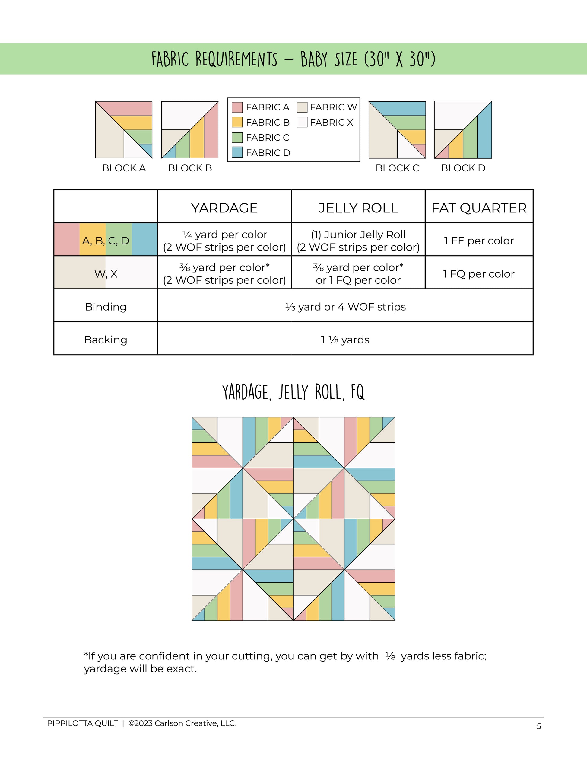 *BONUS! Instructions for a 12-Color "Sewn Leftover" Baby size Pippilotta Quilt (30" x 30") included!