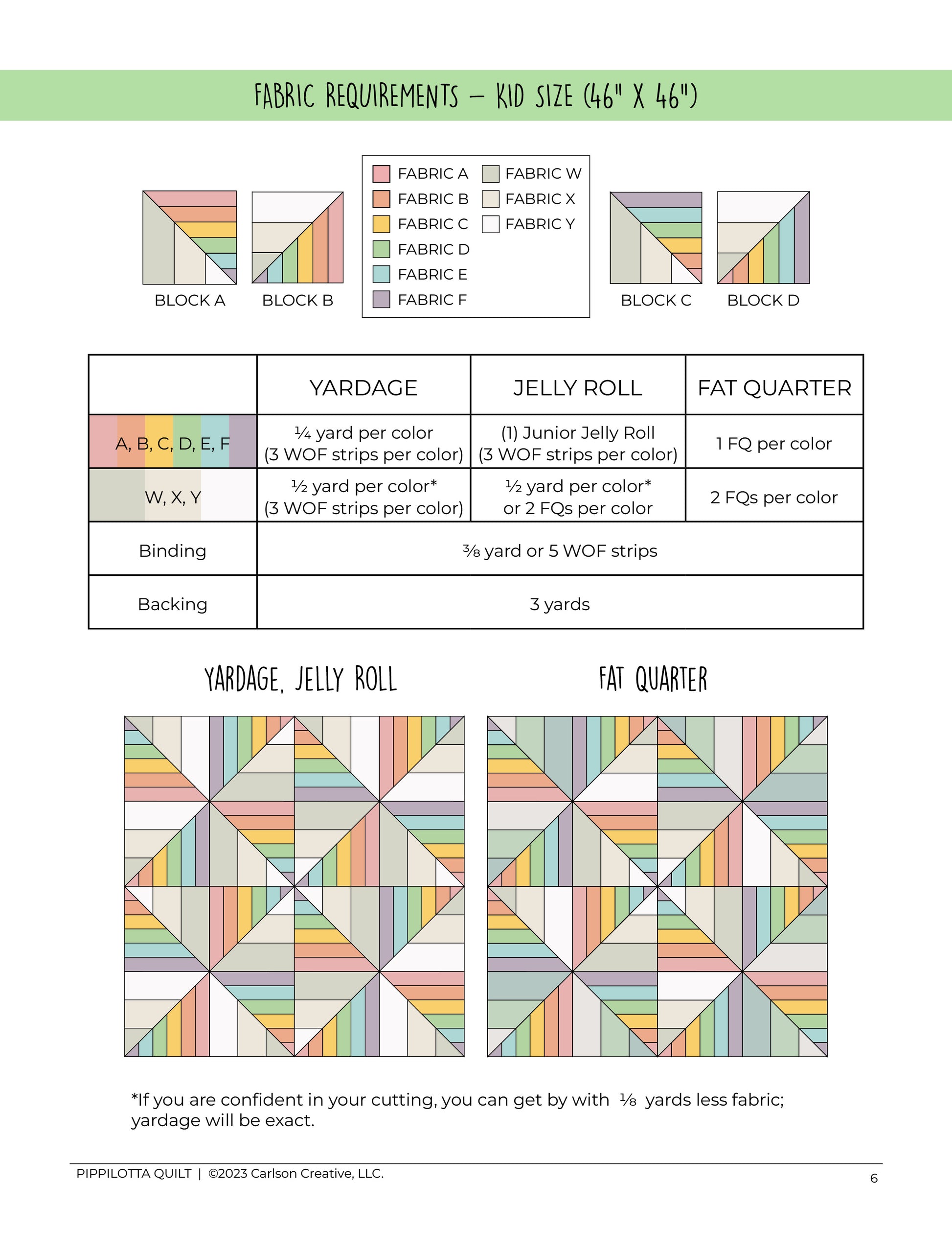 The Pippilotta quilt is a beginner pattern that comes in the following sizes: