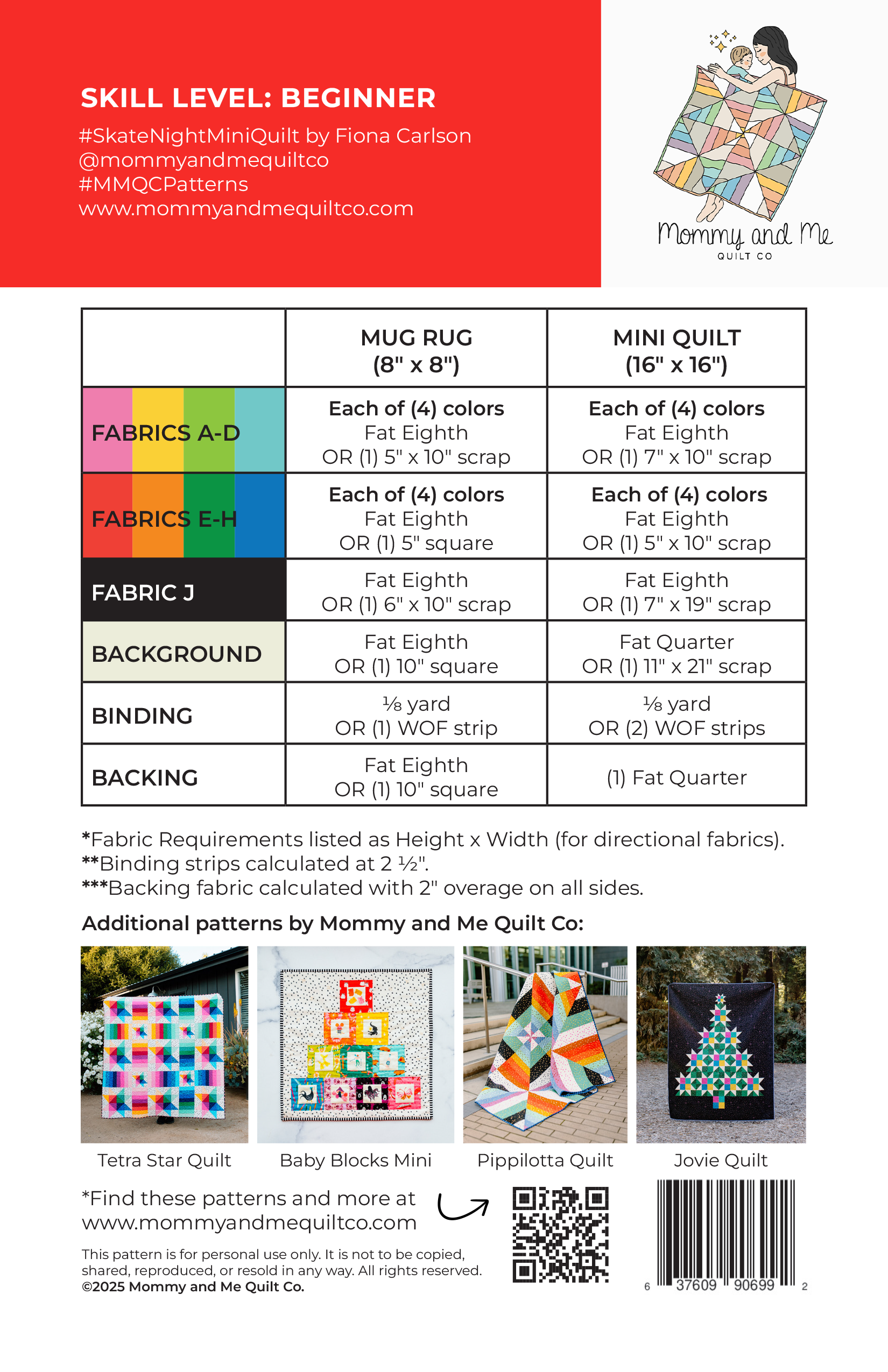 **NOTE: This is a physical product. You will receive a printed copy of the Skate Night Mini quilt pattern in the mail.
