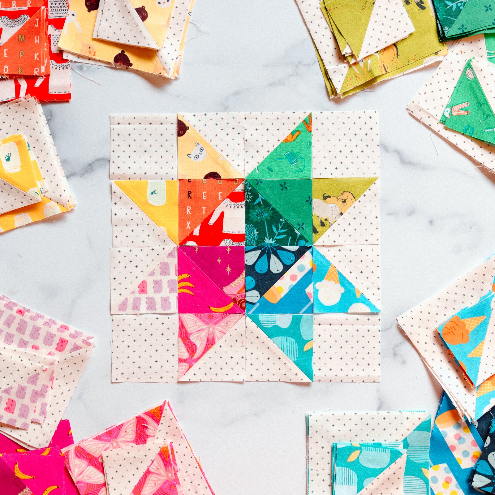 The Tetra Star mini quilt is a pre-cut and scrap-friendly mini quilt pattern using traditional piecing methods for all quilting levels.