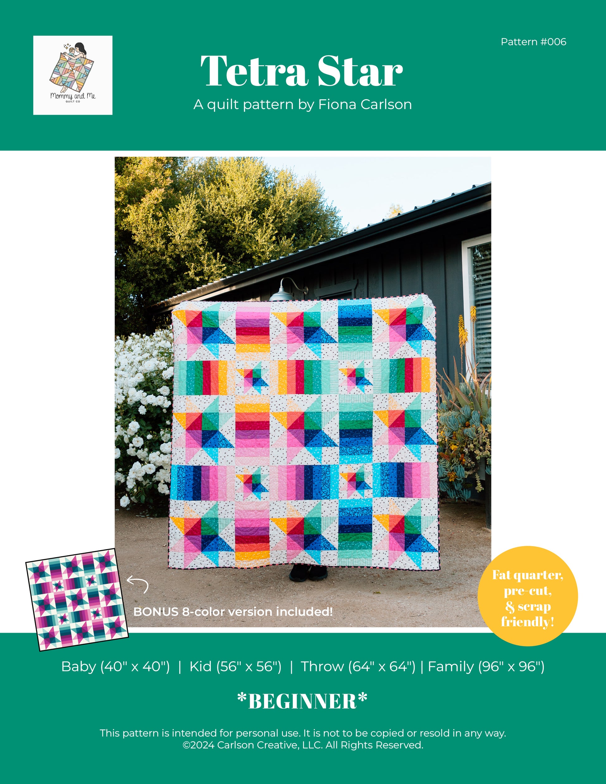 Tetra Star is a fat quarter, precut, and scrap-friendly quilt pattern using traditional piecing methods for all quilting levels.